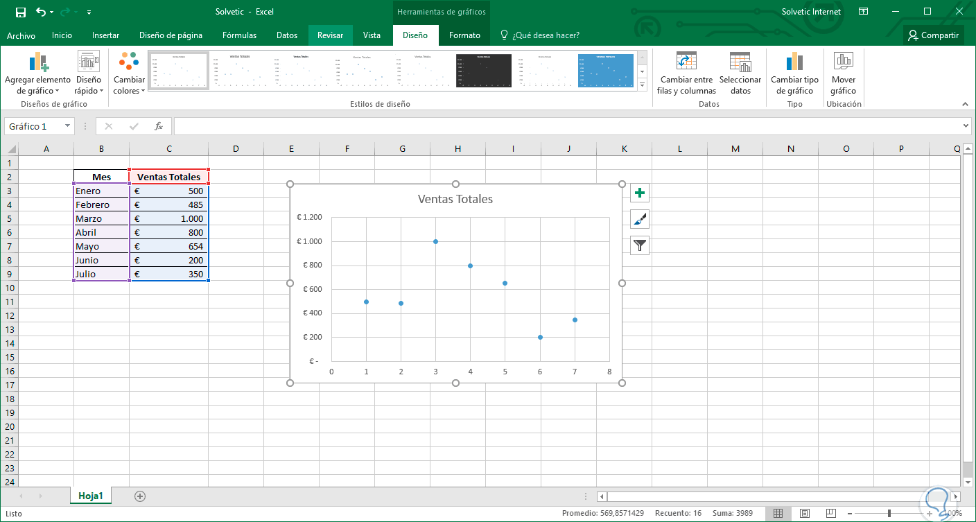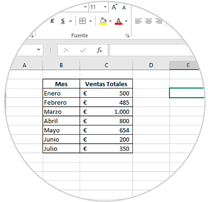 Con estos datos podemos determinar que la celda Mes es la variable X y la celda Ventas Totales es la variable Y.