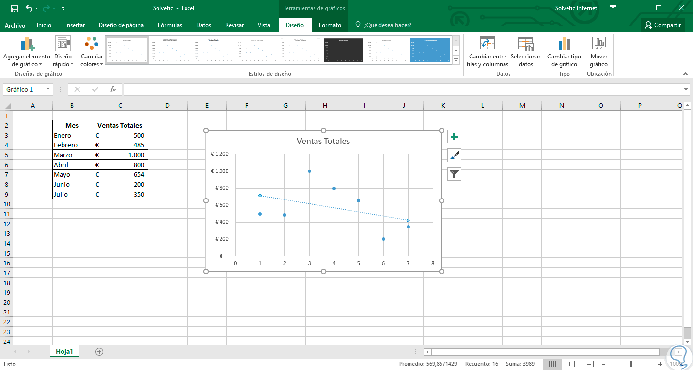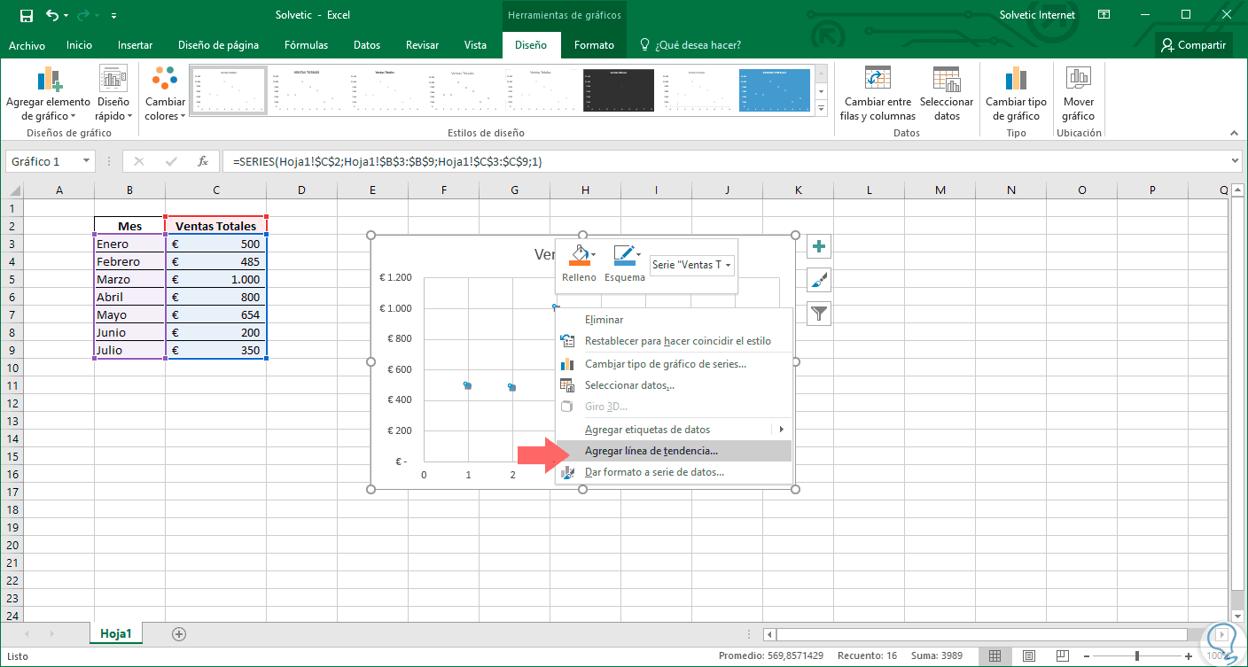 2. Crear línea de tendencia en Excel 2016
