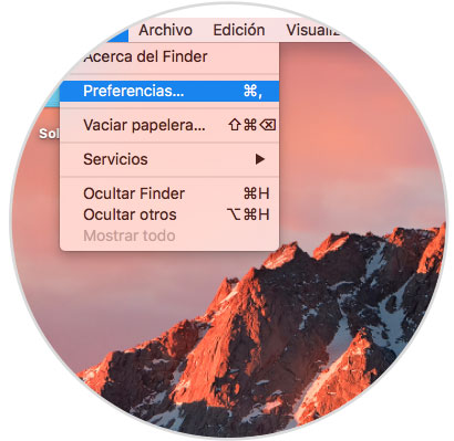 Si deseamos ver u ocultar todas las extensiones de archivos en macOS Sierra realizaremos el siguiente proceso. Abrimos Finder en macOS Sierra y nos dirigimos a la ficha Finder y seleccionamos la opción Preferencias: