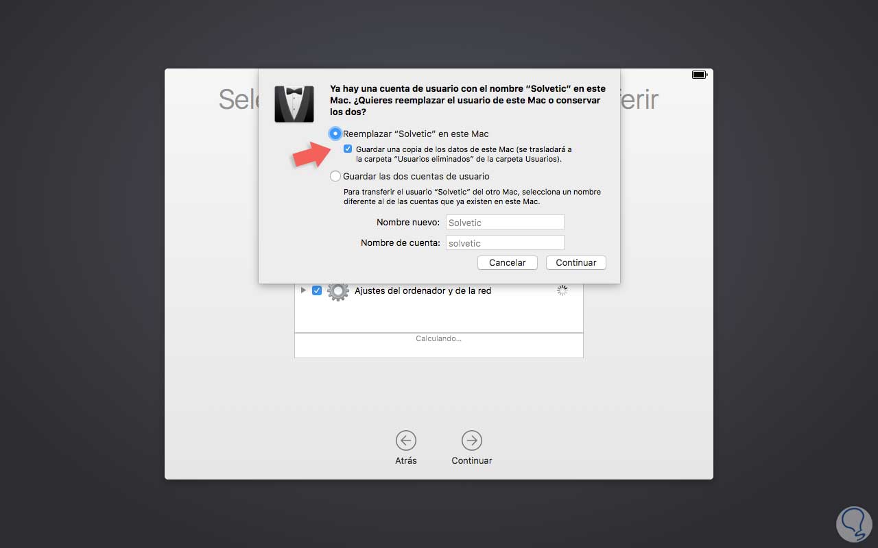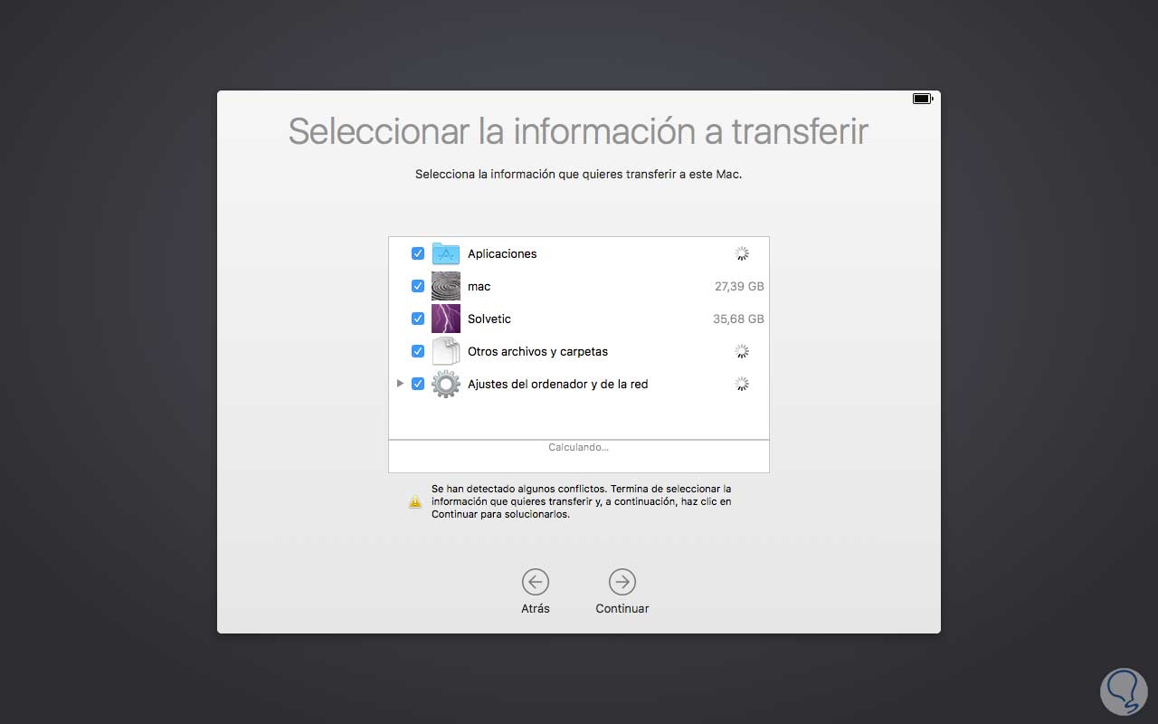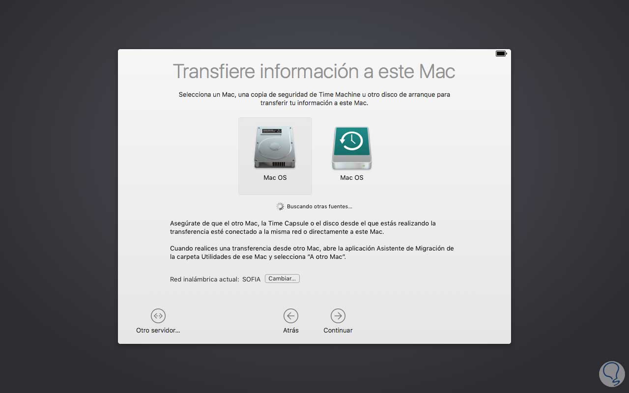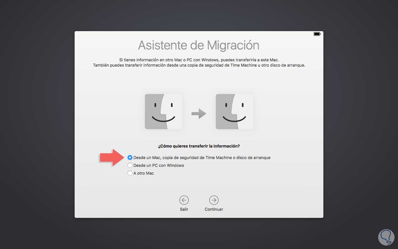 En este caso seleccionamos la primera opción y pulsamos en Continuar. Este proceso lo realizaremos en el nuevo equipo Mac. Allí veremos lo siguiente: