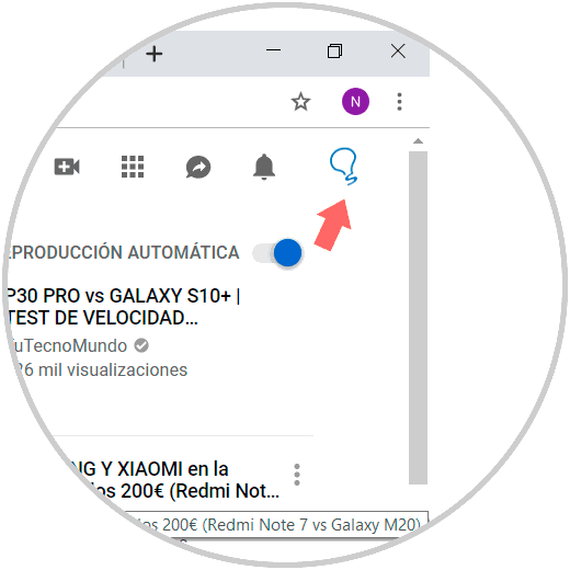 Entra en la web de YouTube, y una vez que accedas pulsa sobre el icono de la esquina superior derecha en el que vas a ver las opciones del mismo.