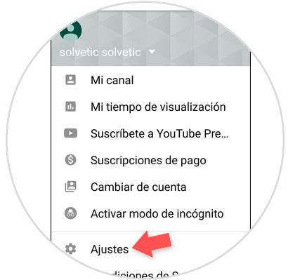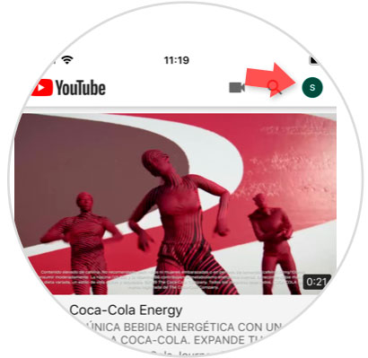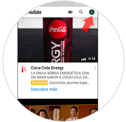 Entra en la App de YouTube desde tu móvil, y una vez dentro tienes que pulsar sobre el icono que aparece en la esquina superior derecha que indica que estas logado dentro de YouTube.