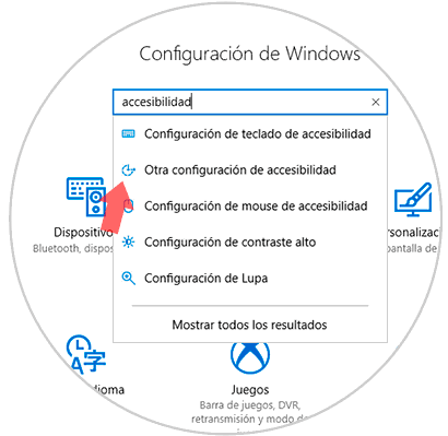 Allí ingresaremos el termino accesibilidad en el cuadro de búsqueda y seleccionamos la opción Otra configuración de accesibilidad: