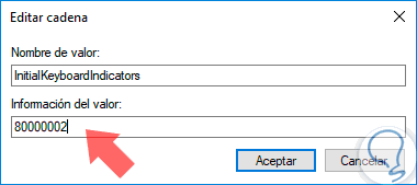 El registro que debe ser editado es "InitialKeyboardIndicators" el cual será establecido según nuestro sistema operativo de la siguiente forma: