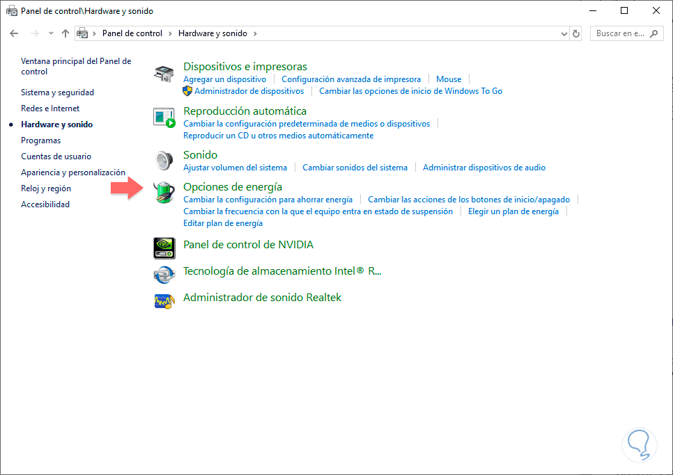 A continuación, entraremos en la opción “Opciones de energía” en la siguiente ventana.
