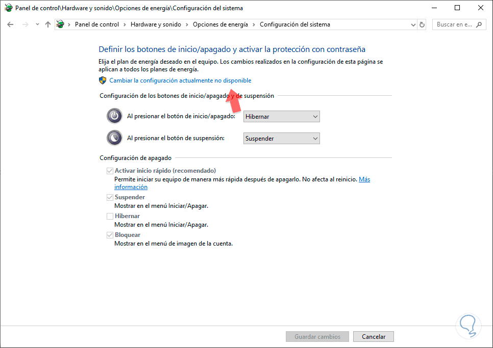Para poder modificar las opciones tendremos que pulsar en “Cambiar la configuración actualmente no disponible”.