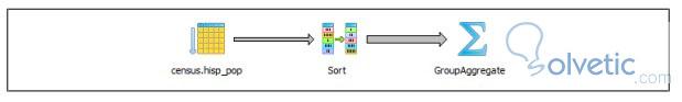 Es una consulta muy sencilla donde hacemos sumas de campos, agrupamos y ordenamos según uno de los campos, lo que obtendremos como resultado del análisis de rendimiento será lo siguiente: