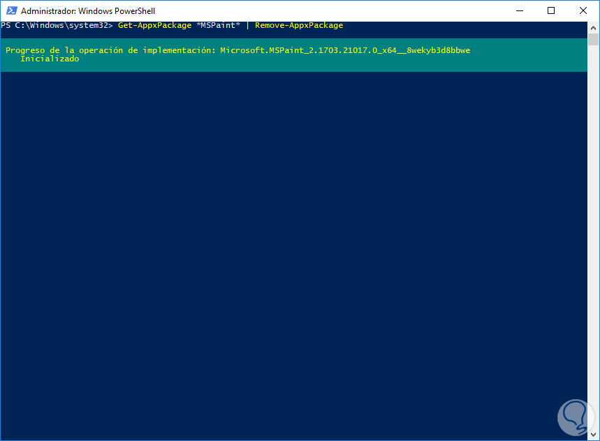Get-AppxPackage *MSPaint* | Remove-AppxPackageVeremos lo siguiente: