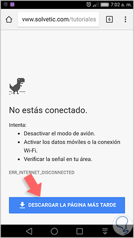 En caso de no contar con conexión en el momento de la descarga veremos lo siguiente: