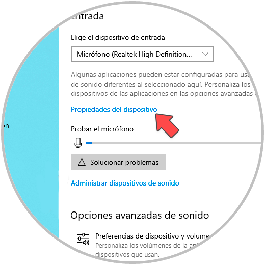 Si no te aparece este icono o no te funciona, abre la Configuración de sonido Windows 10 . Ahora entra en “Propiedades del dispositivo”.