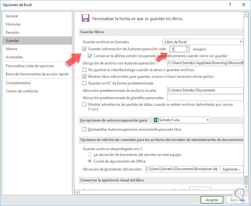 1. Configurar Autorecuperación en Excel 2016