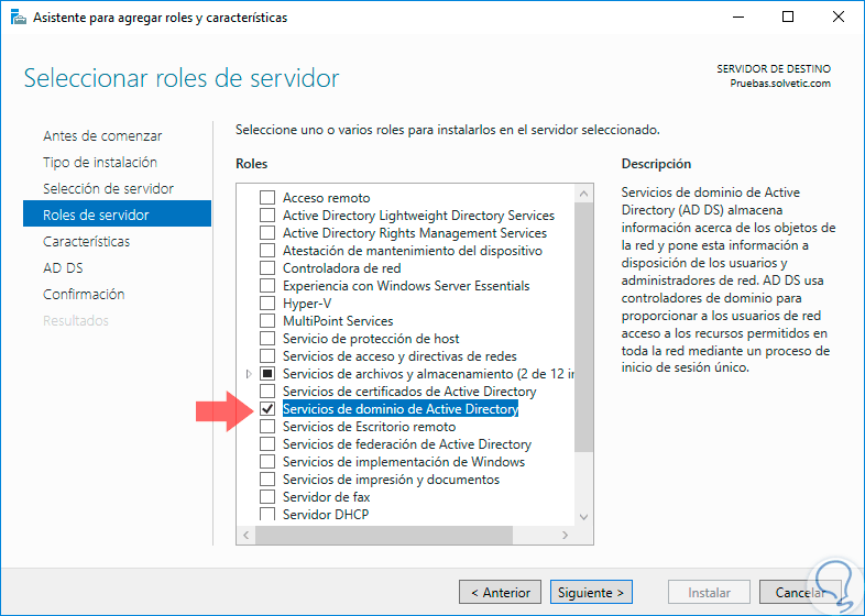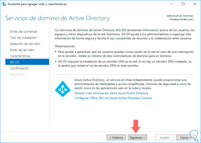 3. Instalar los servicios de Directorio Activo en Windows Server 2016