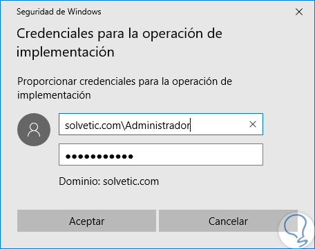 Pulsamos en el botón Seleccionar y será necesario ingresar las credenciales de administrador para establecer la conexión con el controlador primario:
