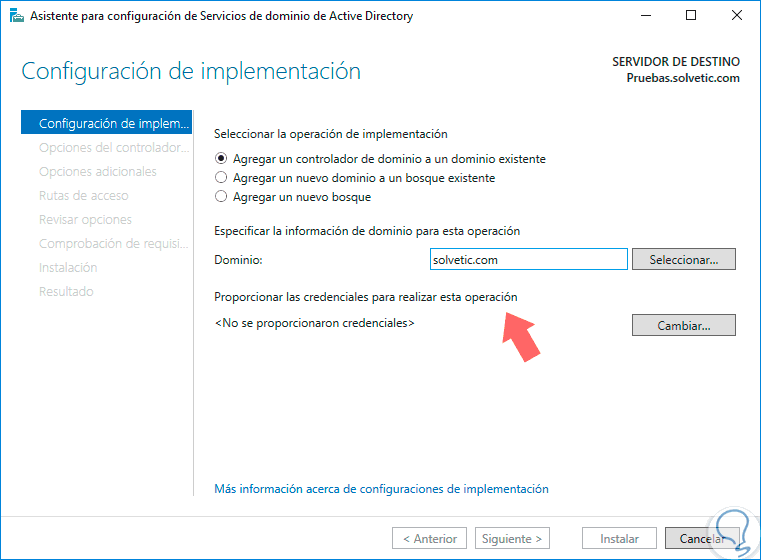 4. Promocionar a Controlador de dominio en Windows Server 2016
