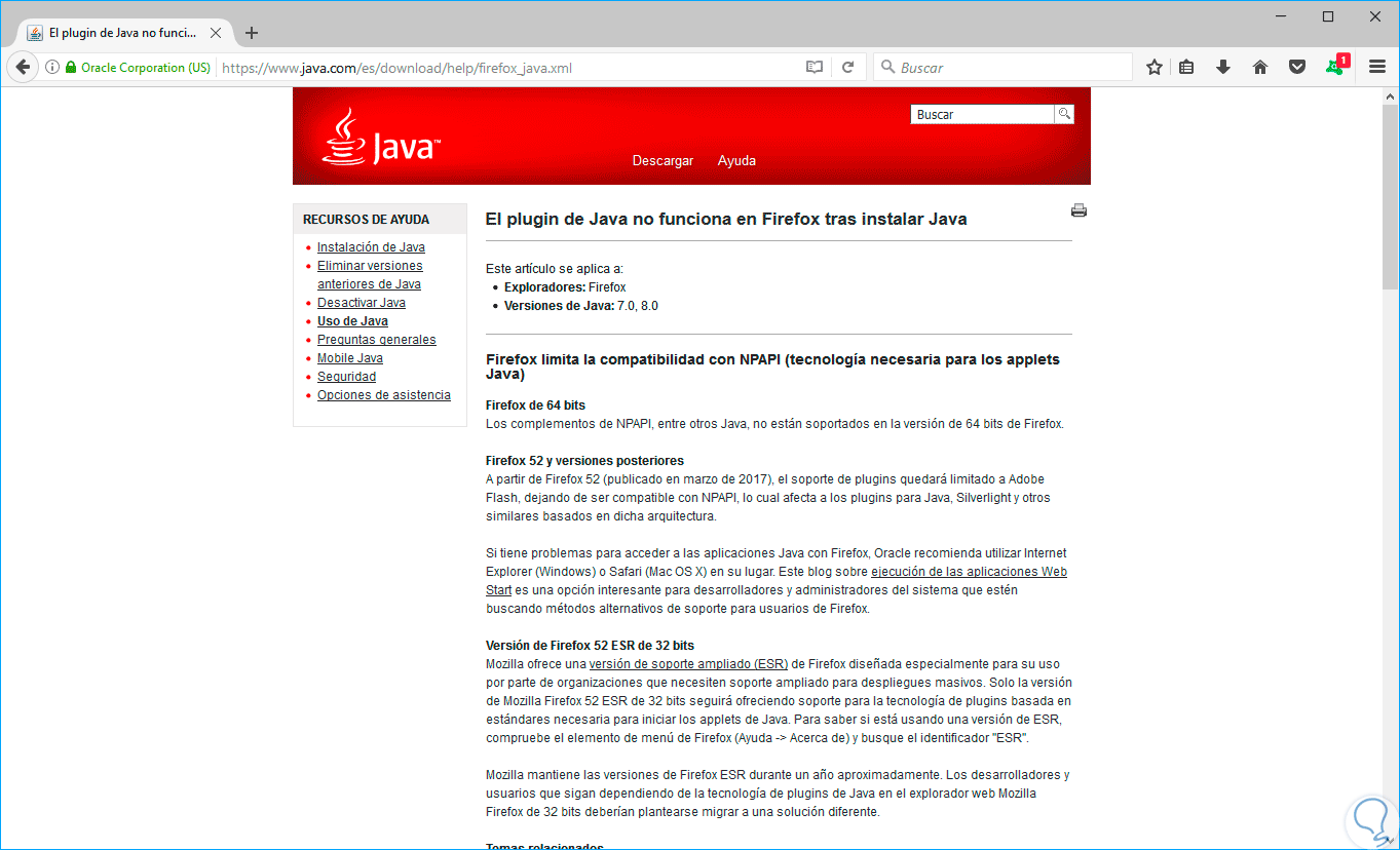 En las versiones actuales de Mozilla Firefox se ha deshabilitado el uso de Java por razones de seguridad: