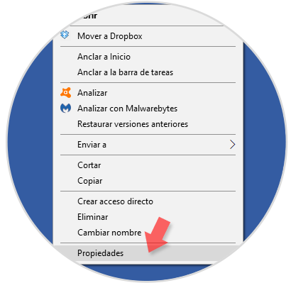Para realizar este proceso daremos clic derecho sobre el icono a modificar y de la lista desplegada seleccionamos la opción Propiedades: