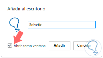 En la ventana que te sale añade el nombre para identificarlo y habilita la opción de Abrir como ventana.