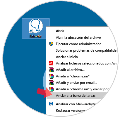 Si vamos al escritorio veremos el acceso directo a nuestra página creado. Para llevarlo a la barra de herramientas haremos clic derecho sobre él y seleccionaremos Anclar a la barra de tareas.