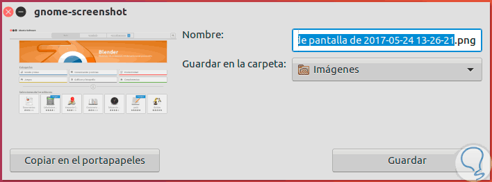 Allí podremos ver la imagen capturada y podremos copiarla en el portapapeles para continuar tomando más capturas o elegir donde se ha de almacenar la imagen. Una vez confirmemos estos puntos pulsamos en el botón Guardar y la imagen será guardada por defecto como .png. De esta forma la utilidad Capturar pantalla es una solución práctica para la toma de imágenes.
