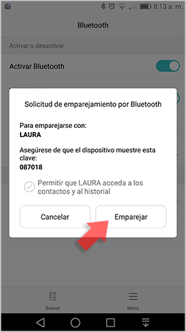 Si es correcto pulsamos en la opción Emparejar y de forma automática el equipo será emparejado con Windows 10 a través del Bluetooth: