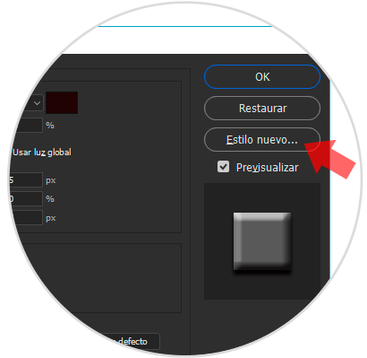 Para que se quede guardado nuestro estilo, ve a las Opciones de fusión como en el paso 3 y 4. Ahora selecciona la opción de Estilo nuevo debajo de Ok y Cancelar. Activa las casillas de guardar los efectos, da un nombre y guarda tu nuevo estilo.