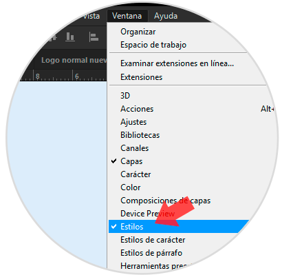 La ventana de Estilos suele aparecer por defecto pero por si no te aparece, ve a Ventana – Estilos y pulsa sobre ello para que se active la ventana.