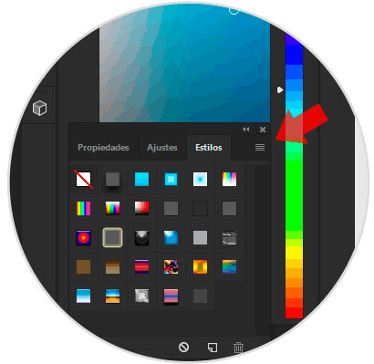 Ahora en la ventana de Estilos haz clic sobre el menú de tres rayas que aparece.