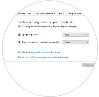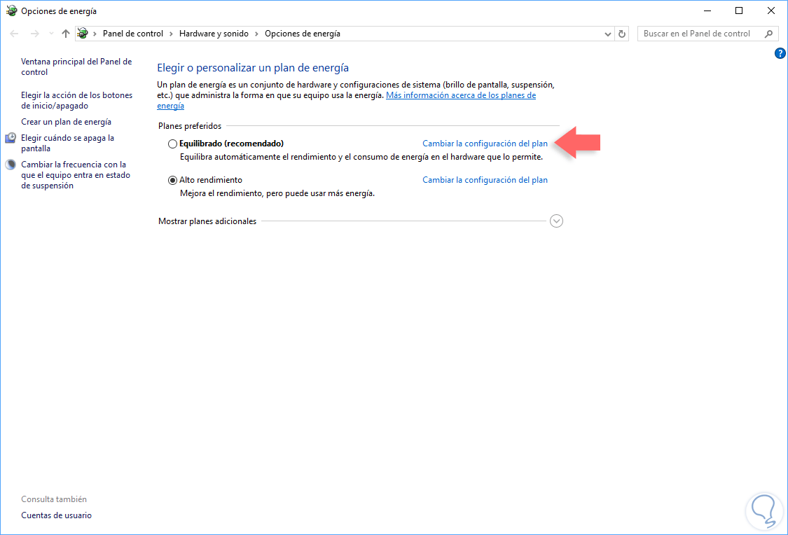 Pulsamos en la opción Cambiar la configuración del plan (Equilibrado) y se desplegará lo siguiente: