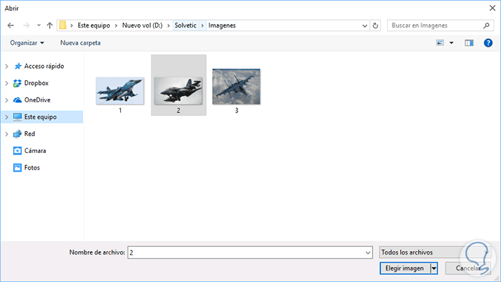 De la misma manera podremos pulsar en la opción Examinar para seleccionar otra imagen almacenada localmente: