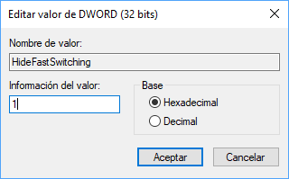 A este nuevo valor daremos el nombre HideFastSwitching: