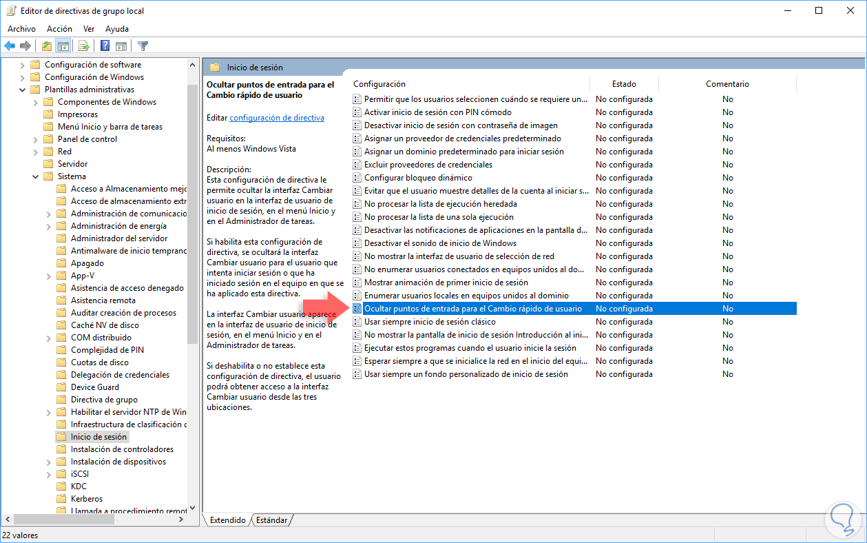 1. Deshabilitar el cambio rápido de usuario usando políticas locales de grupo