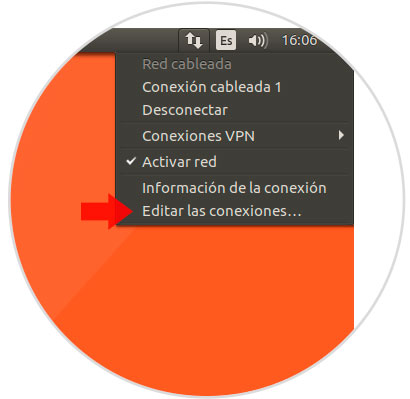 Para esto pulsamos en el icono de red ubicado en la parte superior y seleccionamos la opción Editar las conexiones: