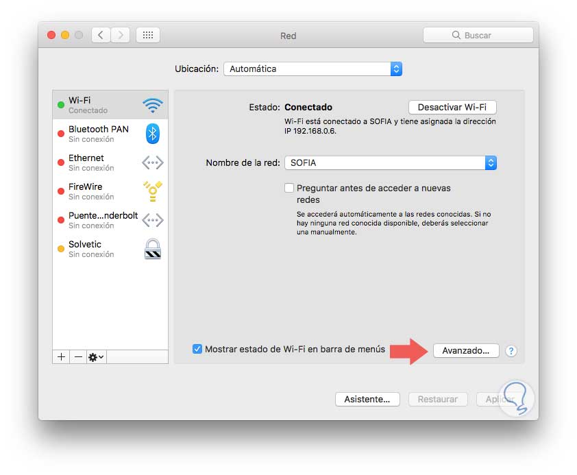 Allí se desplegará la red a la cual estamos conectados, pulsaremos sobre dicha red y activamos la opción Mostrar opciones avanzadas: