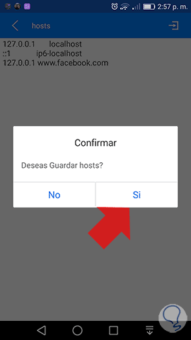 Pulsamos en la ficha Hosts para guardar los cambios. De esta forma podremos bloquear sitios web usando ES File Explorer.