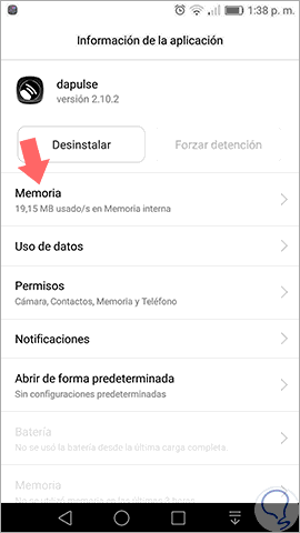 Allí pulsamos en la sección Memoria y se desplegará lo siguiente: