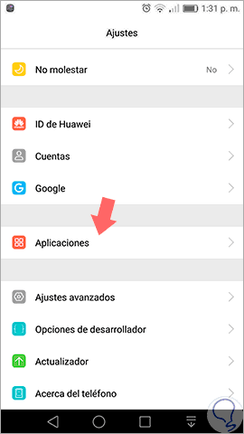 Una vez pulsemos en Ajustes buscamos la sección Aplicaciones: