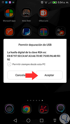 Allí pulsamos en Aceptar. Ahora ingresamos la línea adb Shell y finalmente para iniciar la grabación ejecutaremos la siguiente línea: