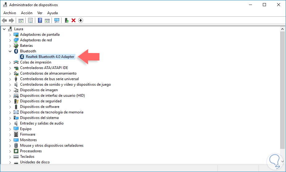 En la ventana desplegada ubicaremos la línea Bluetooth y si está disponible junto a su respectivo adaptador indica que el equipo cuenta con dicha tecnología: