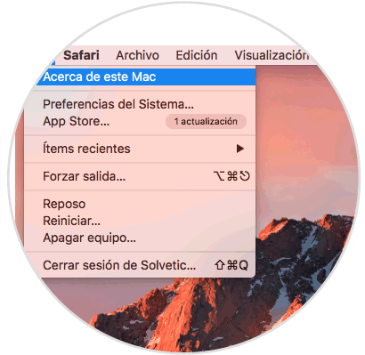Para este caso usaremos macOS Sierra y para verificar esto vamos al menú Apple y seleccionamos la opción Acerca de este Mac: