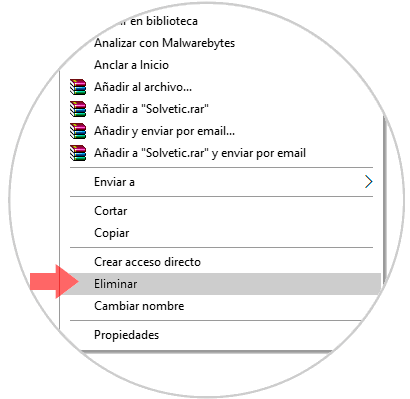 Allí daremos clic derecho sobre la carpeta allí desplegada y seleccionamos la opción Eliminar: