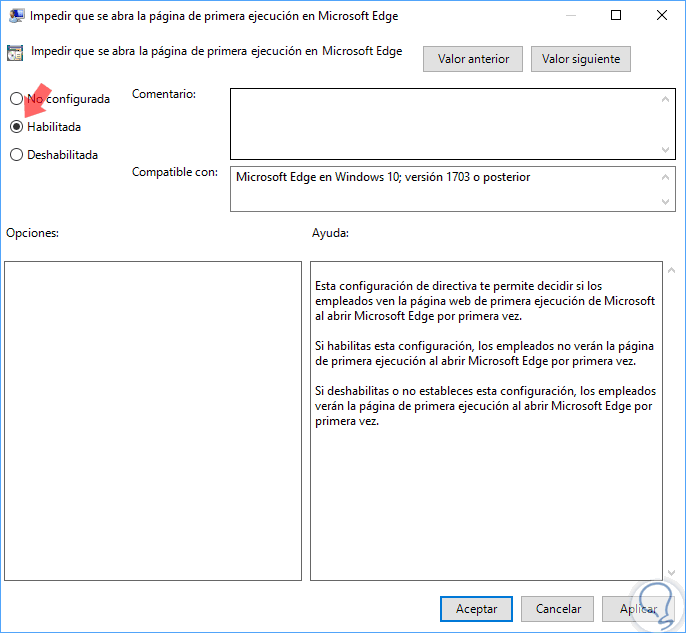 Podemos ver que su valor por defecto es No configurada lo cual permite que dicha página sea ejecutada de forma normal.