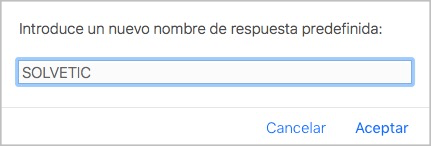 Un dialogo aparecerá para que podamos seleccionar el nombre a nuestra respuesta, colocamos el que mejor se adapte y presionamos Aceptar. Esto guardará nuestra respuesta estándar.