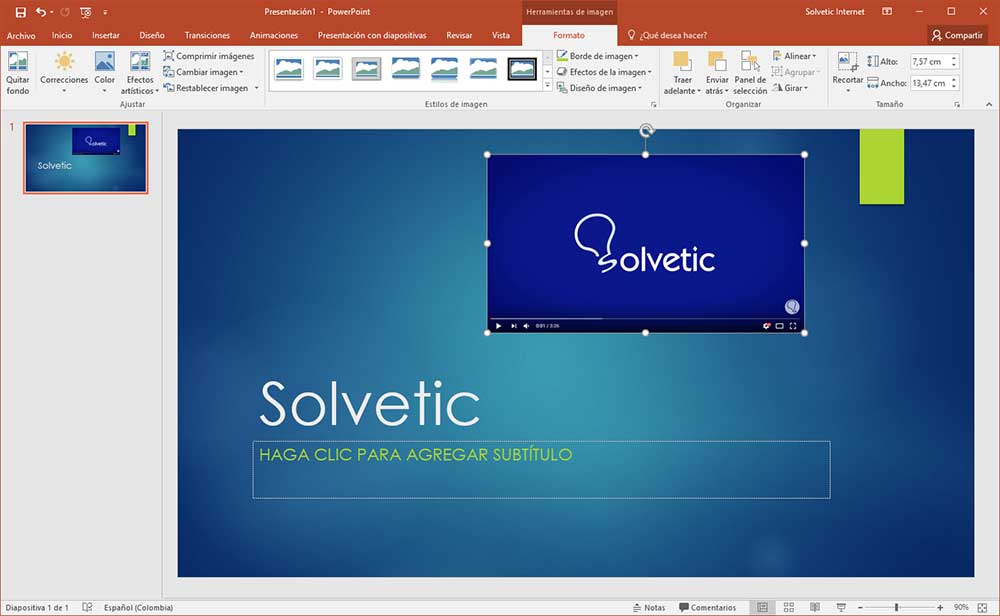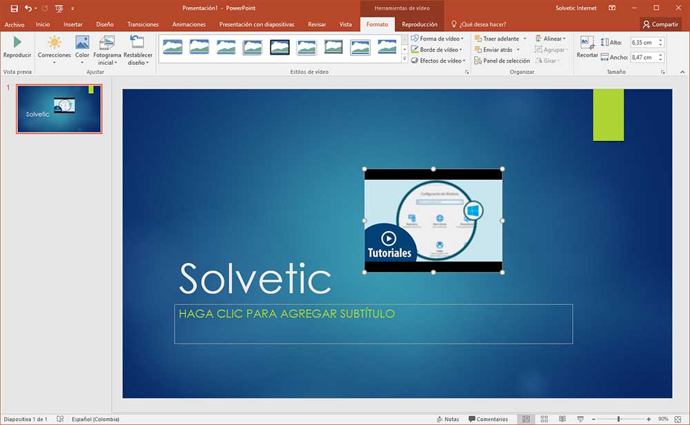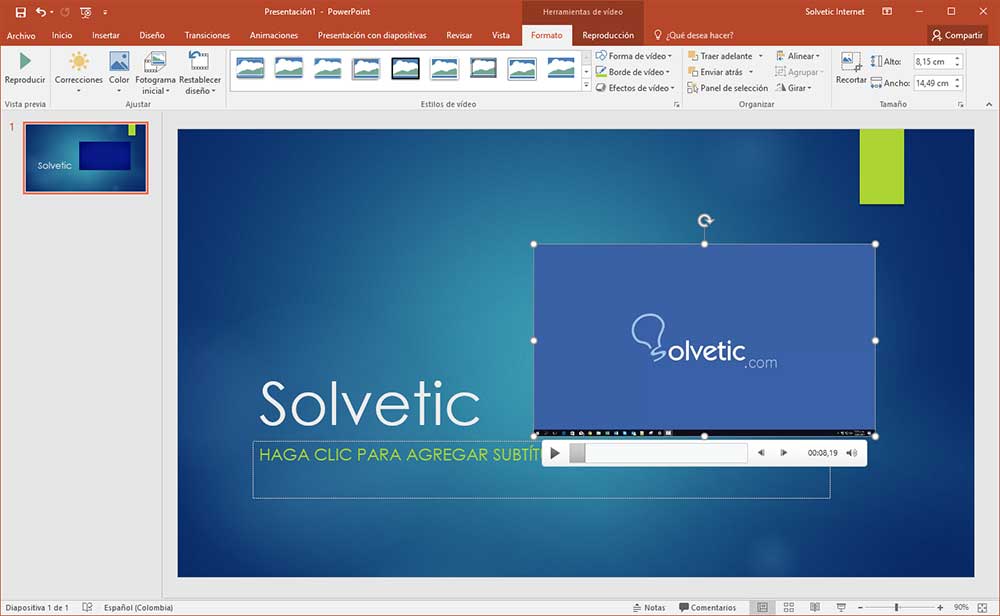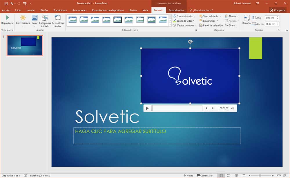 Una vez finalizado el proceso veremos el video añadido en la diapositiva: