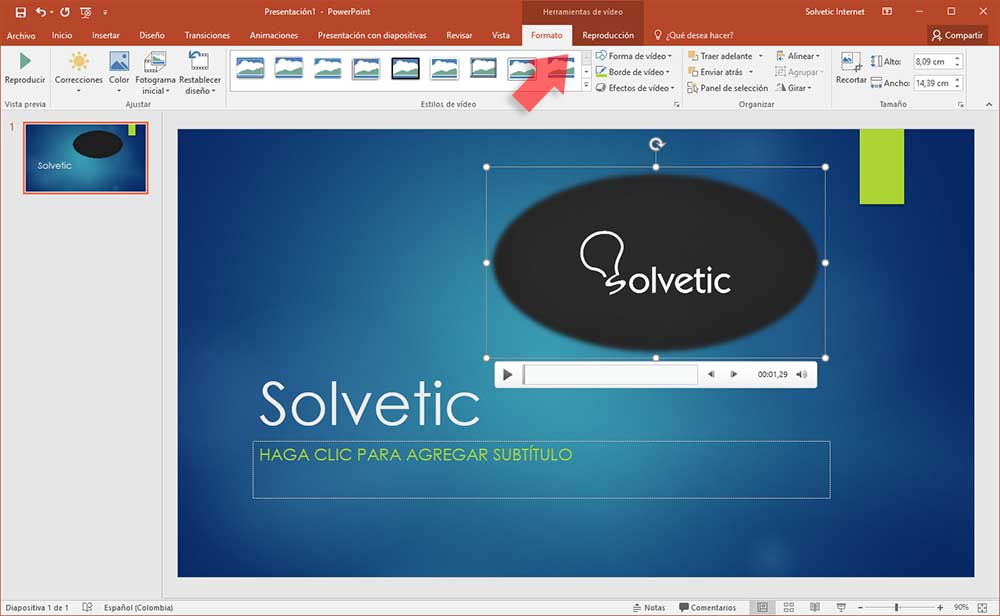 Como vemos de forma automática será desplegada la pestaña Herramientas de video la cual está dividida en dos secciones: Formato y Reproducción.