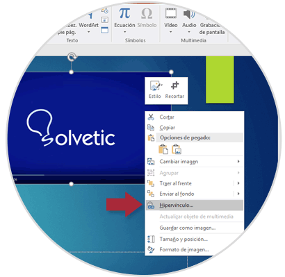 Ahora daremos clic derecho sobre la imagen y seleccionamos la opción Hipervínculo.