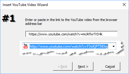Al pulsar allí se desplegará el asistente donde ingresaremos la URL del video de YouTube a añadir: