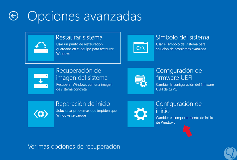 Allí seleccionamos la opción "Configuración de inicio" y veremos un breve resumen de las opciones a elegir: