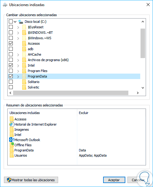 Quizás por razones de seguridad no deseemos que todos los archivos y carpetas de dichas ubicaciones sean incluidos en la búsqueda de Windows 10 ya que pueden ser privados.