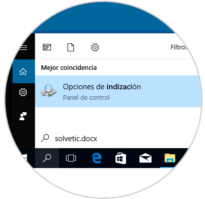 Para esto ingresaremos el término "indización" en el cuadro de búsqueda de Windows 10: