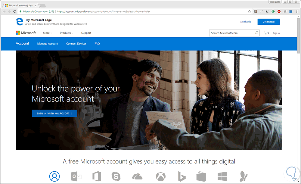 Para realizar este proceso accederemos al siguiente enlace y allí iniciaremos sesión pulsando en el botón Sign in with Microsoft: